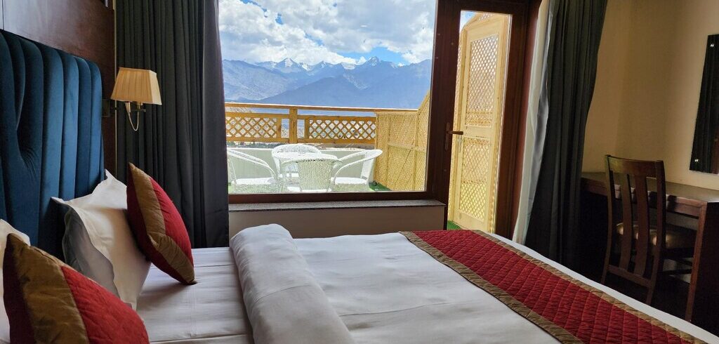 The highlight of the room is the private balcony, where you can step out and breathe in crisp Himalayan air while enjoying uninterrupted views of the surrounding mountains. Mornings begin gently as soft sunlight fills the room, offering a peaceful setting to enjoy a cup of tea or simply sit back and absorb the silence. Evenings are equally serene, with cool mountain breezes and a sense of quiet that makes the room feel like a personal retreat.